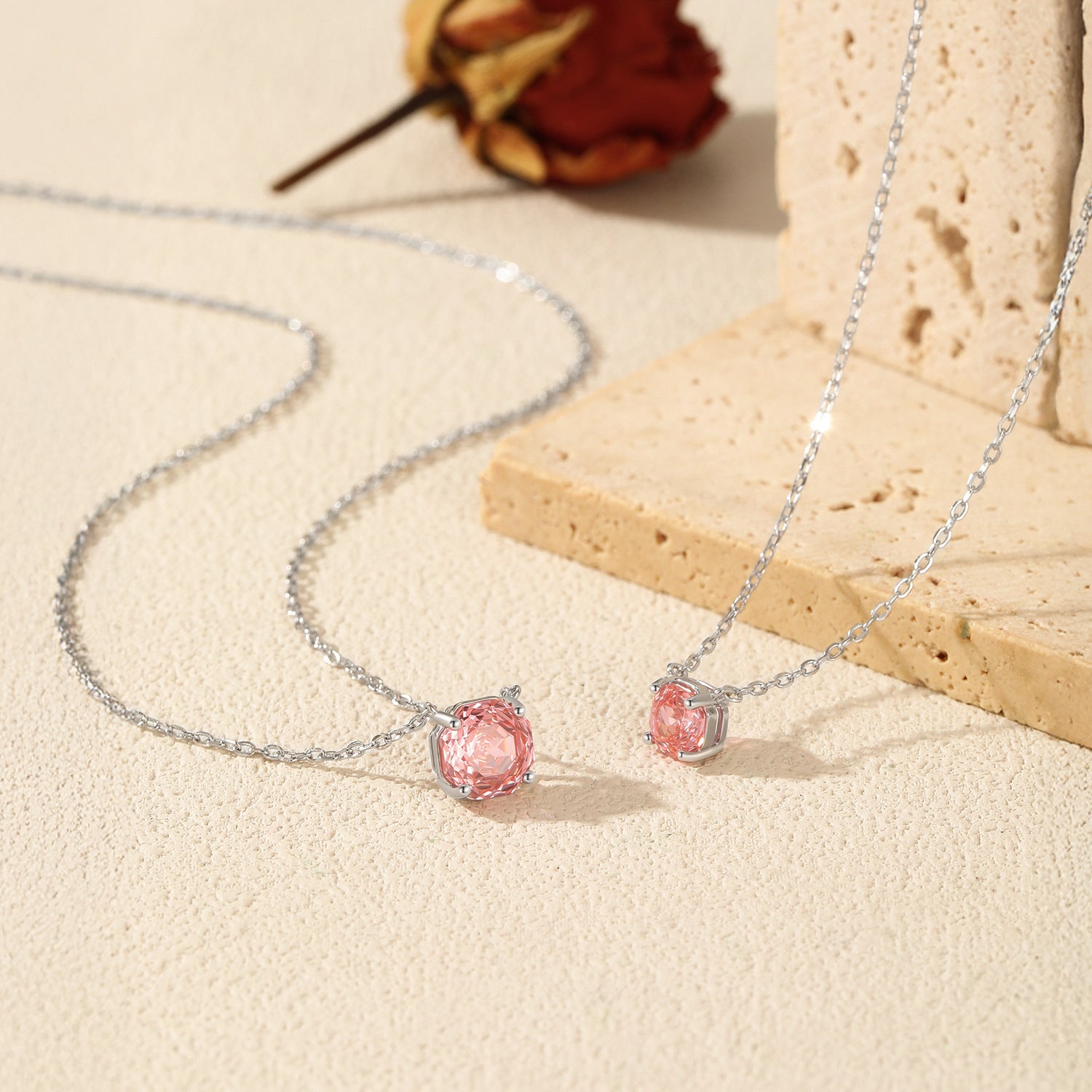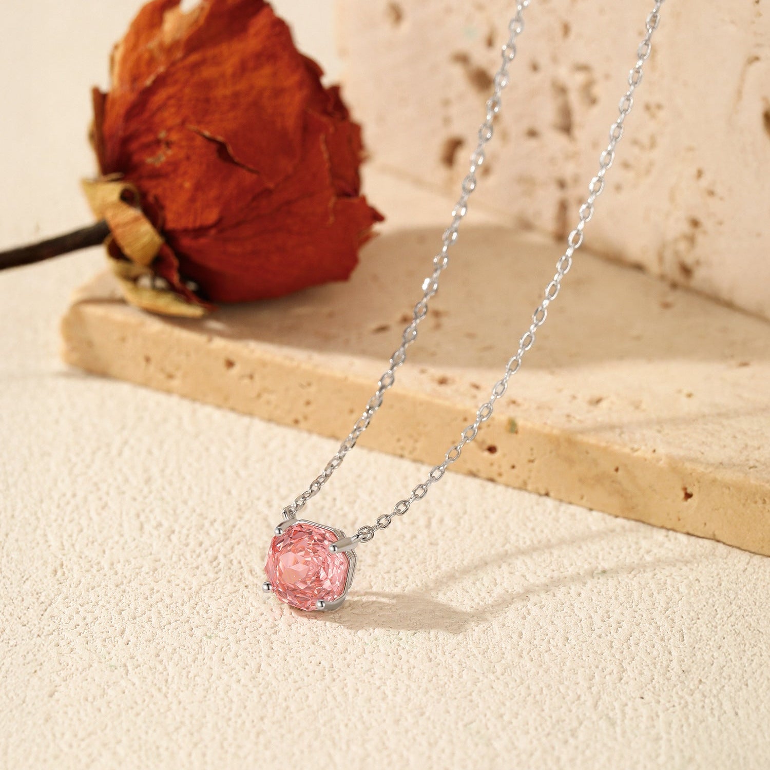 This pendant captures the allure of a blooming rose with intricate faceting that catches the light from every angle. Set on a fine 40 + 5 cm chain, it embodies elegance in its purest form — simple, timeless, and full of quiet strength.
