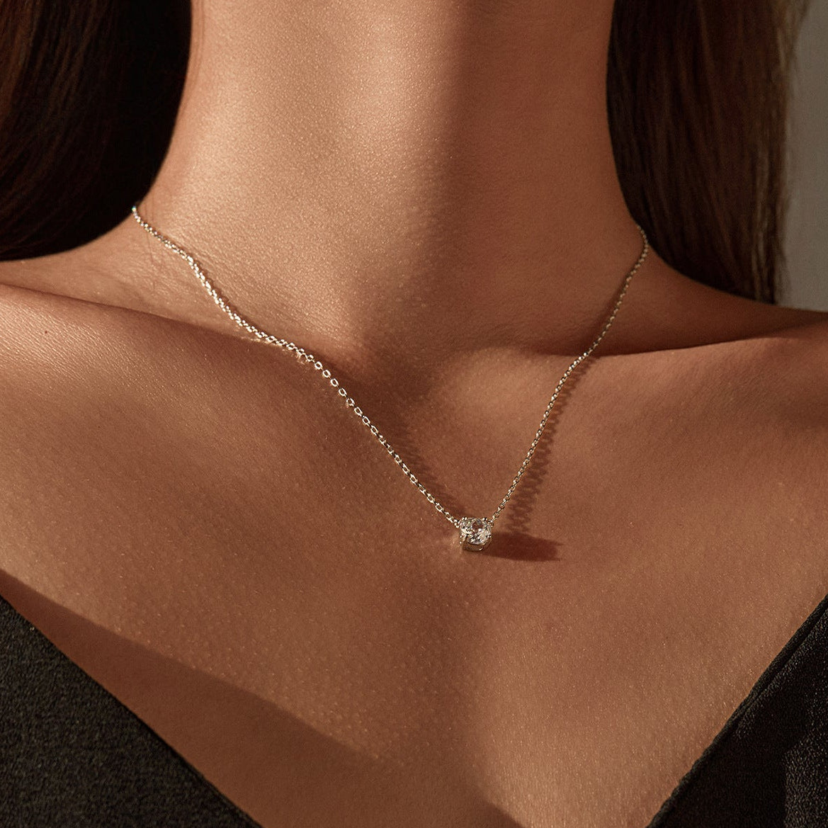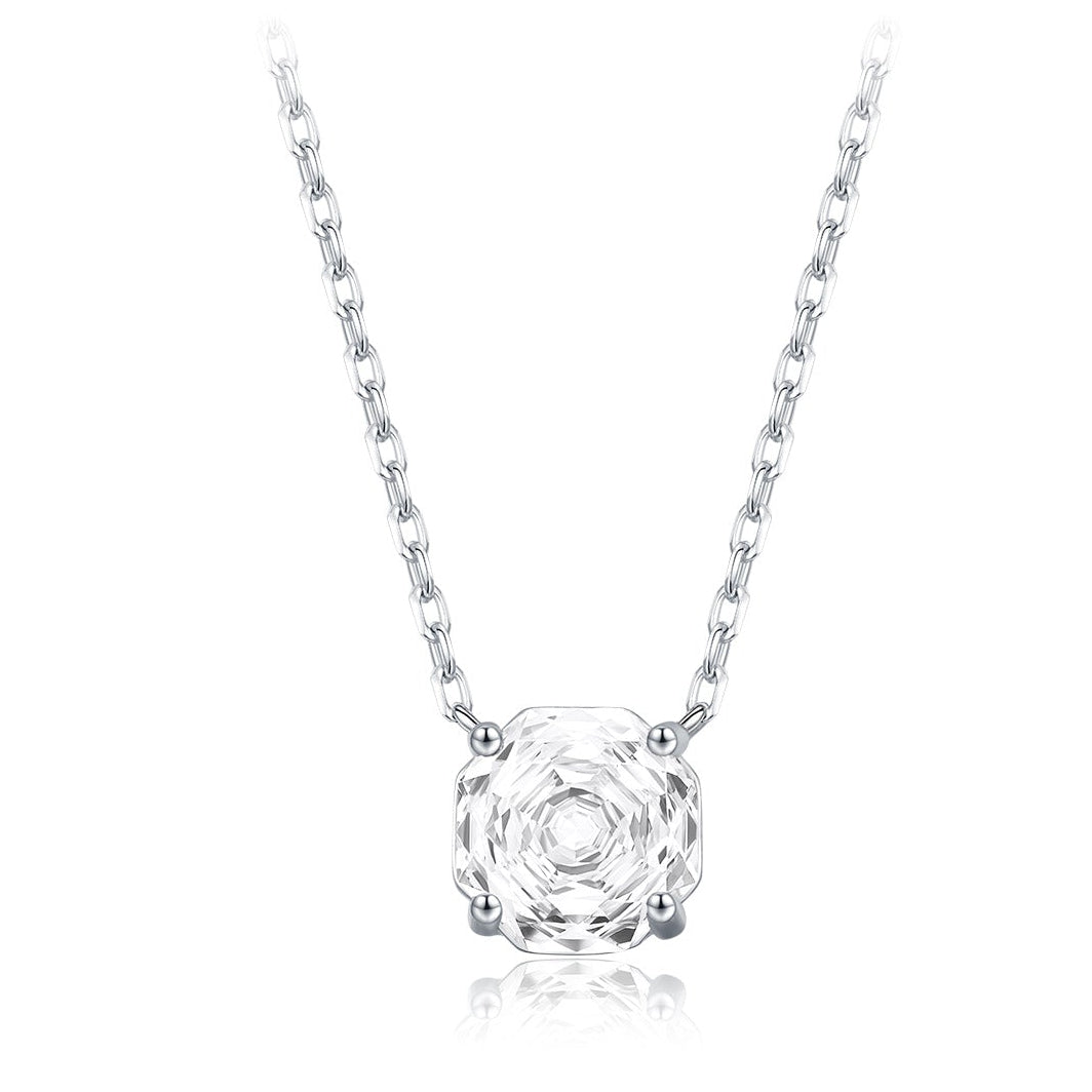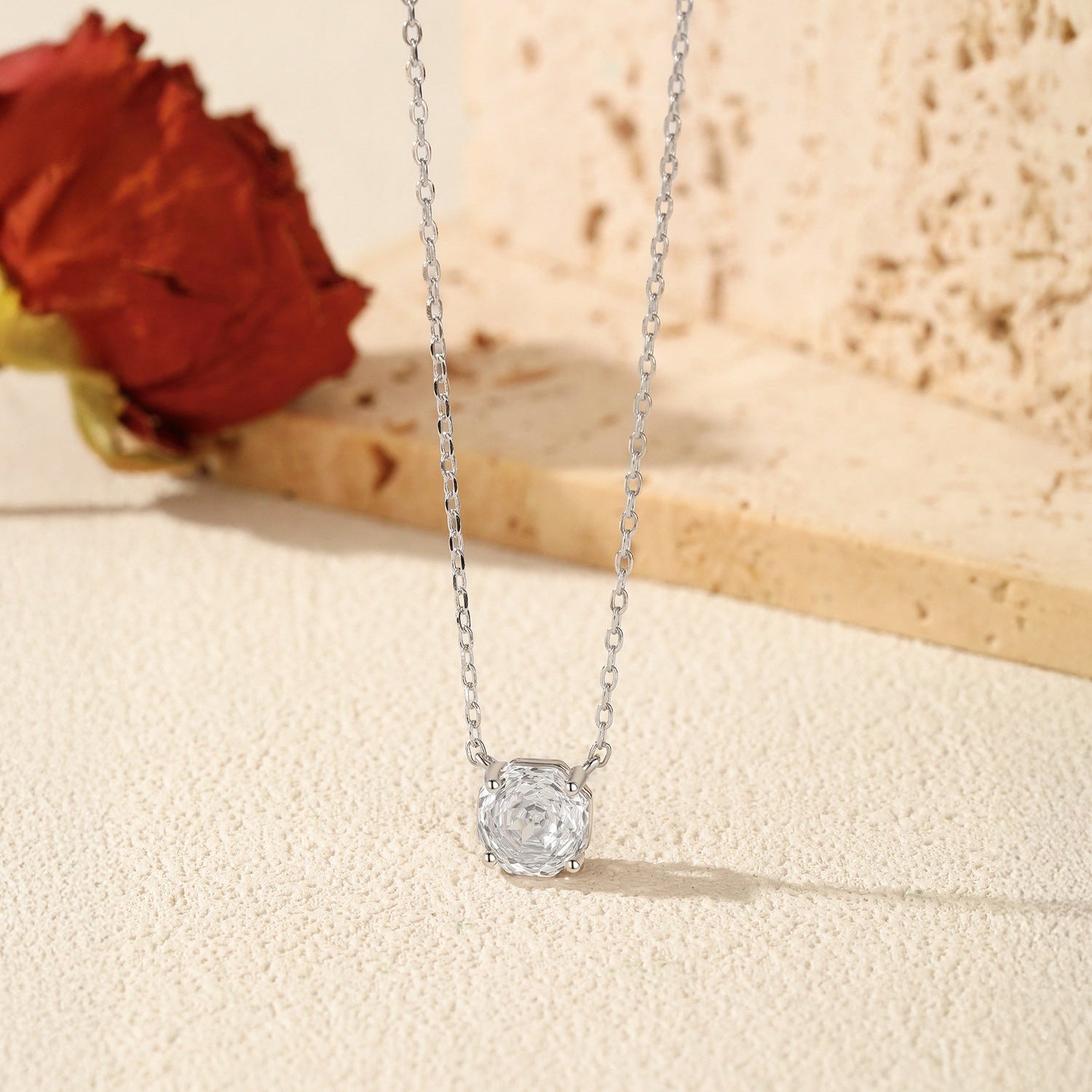 This pendant draws light through its multi-faceted crystal design, offering an airy and refined glow that complements every neckline. Suspended from a 40 + 5 cm chain, it feels both minimal and powerful — perfect for daily wear or layered elegance.