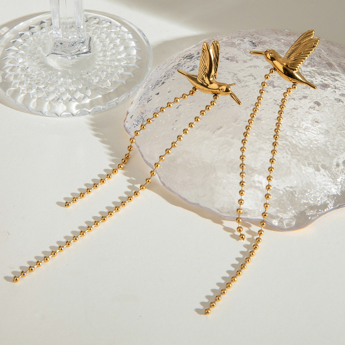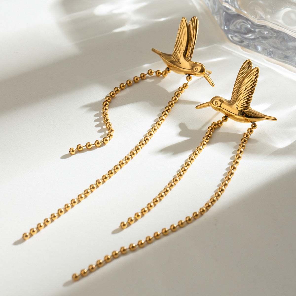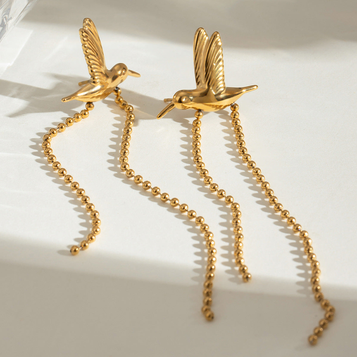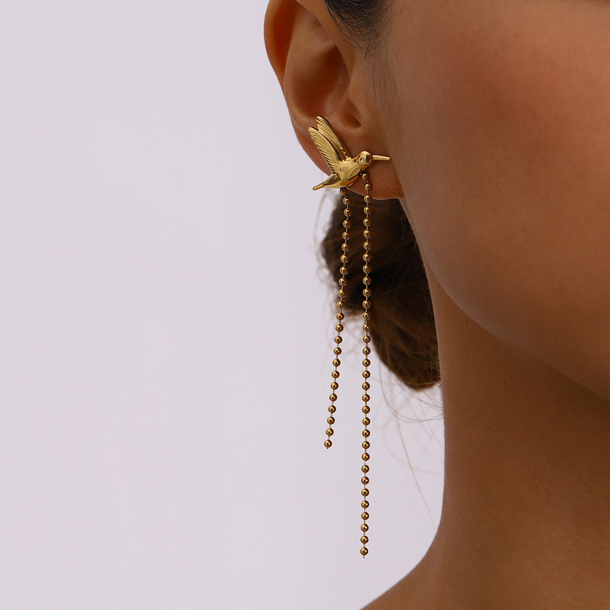 You carry peace with every step, and these earrings move like a quiet prayer in the wind. A golden dove rests above soft tassels that sway with grace, giving even the smallest moment a sense of meaning. Light and timeless, they blend the softness of flight with the calm of stillness.