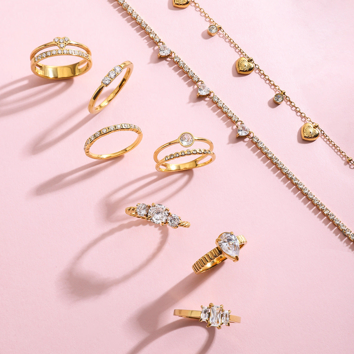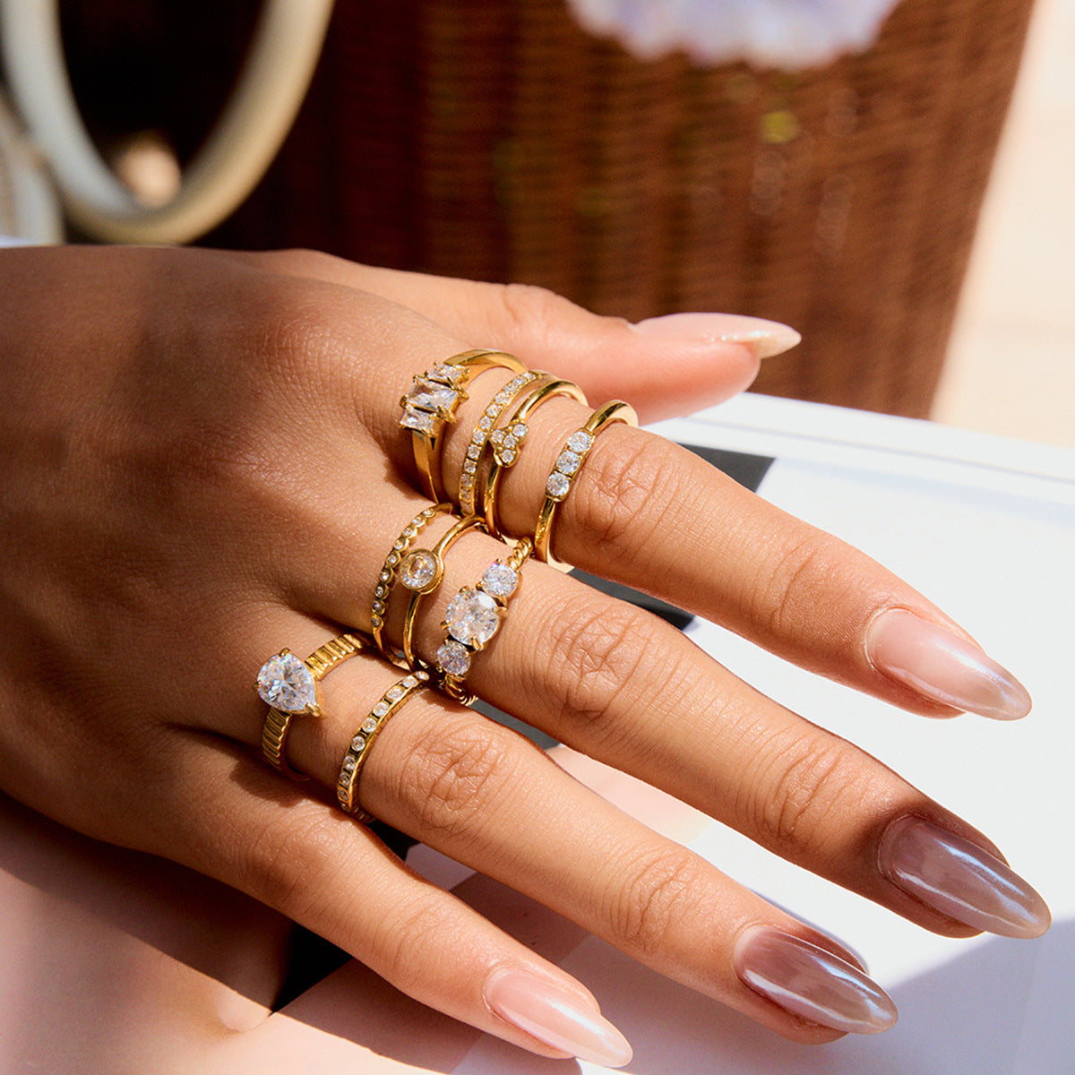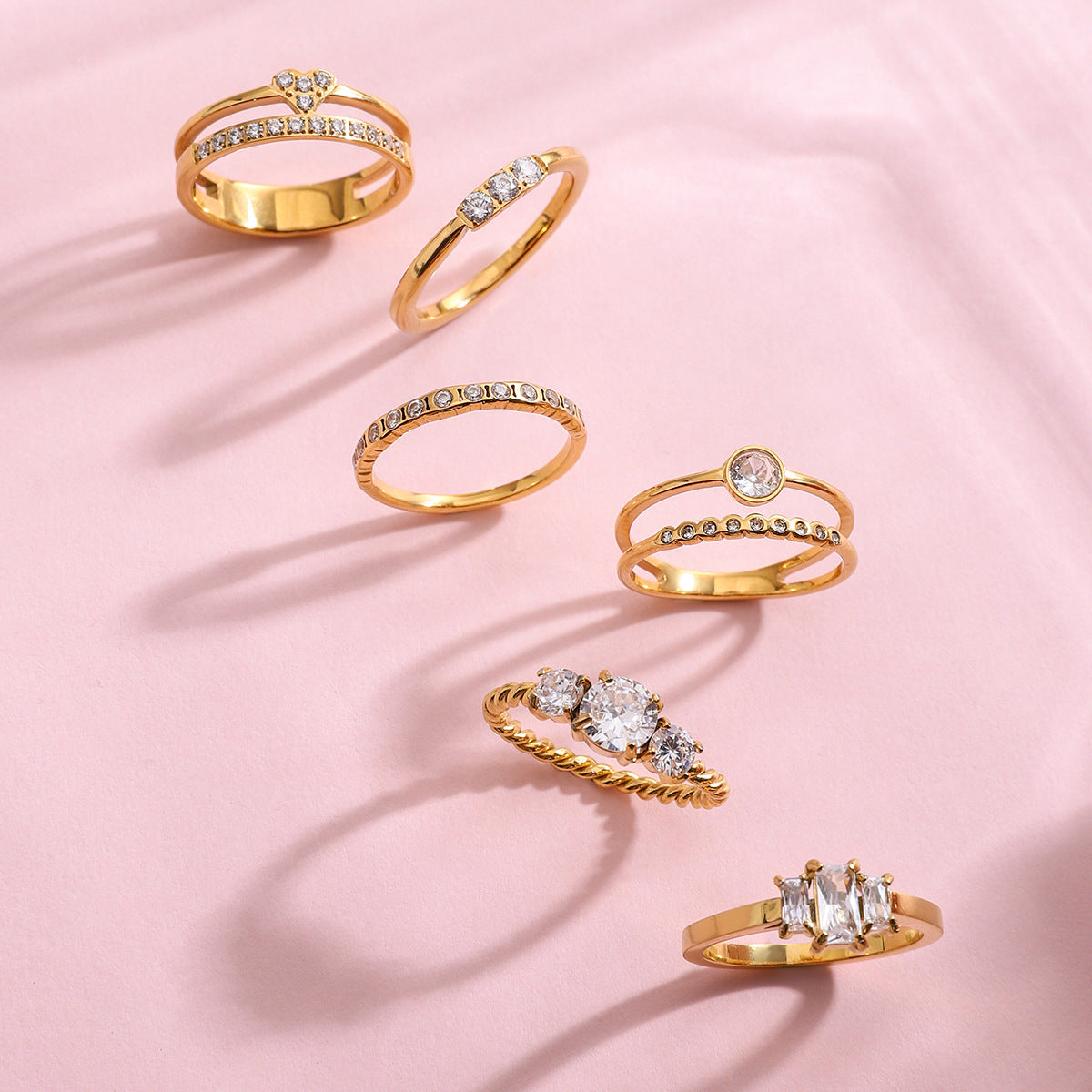A timeless set of gold rings that embodies balance, love, and clarity. Each piece tells its own story — from the delicate heart to the elegant pear shape — blending grace and inner strength into every detail.