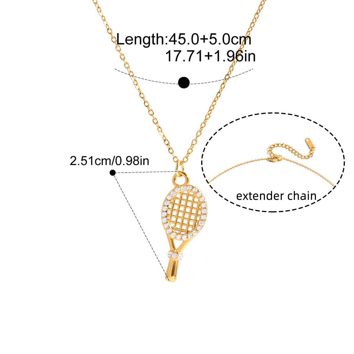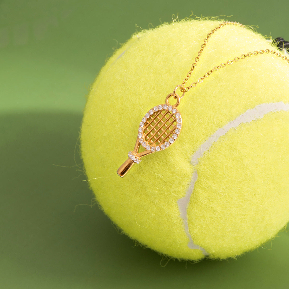 This necklace embodies playful charm with an elegant twist — a finely detailed tennis racket pendant framed in gold, accented by a halo of bright zircon stones for a touch of sparkle. Lightweight, waterproof, and hypoallergenic, it blends sporty energy with refined luxury. A modern signature piece that carries Unglaz’s effortless flair.