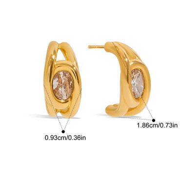A refined ear curation that speaks in quiet confidence. The sculpted gold hoops anchor the look with a soft, fluid silhouette wrapped around a clear stone, while the baguette cuff adds structure with clean lines and a crisp, icy profile. The rounded gold cuff completes the composition with bold simplicity and smooth volume. Together they create a balanced, modern stack that feels intentional and polished.