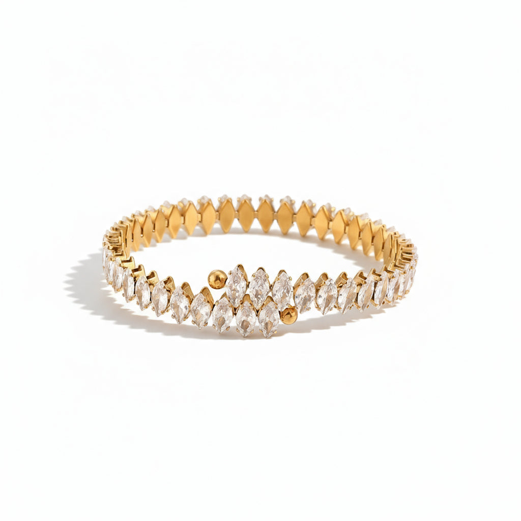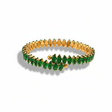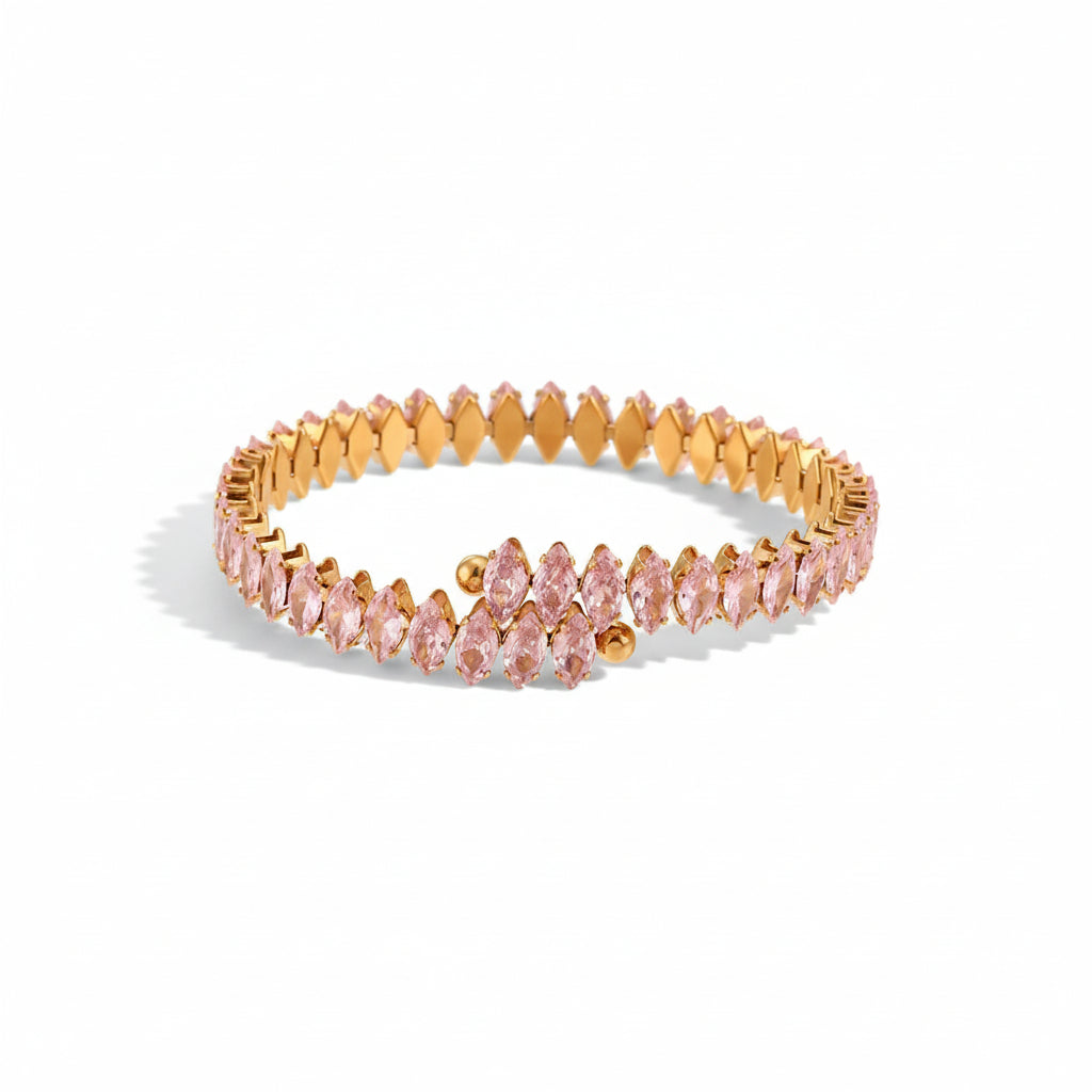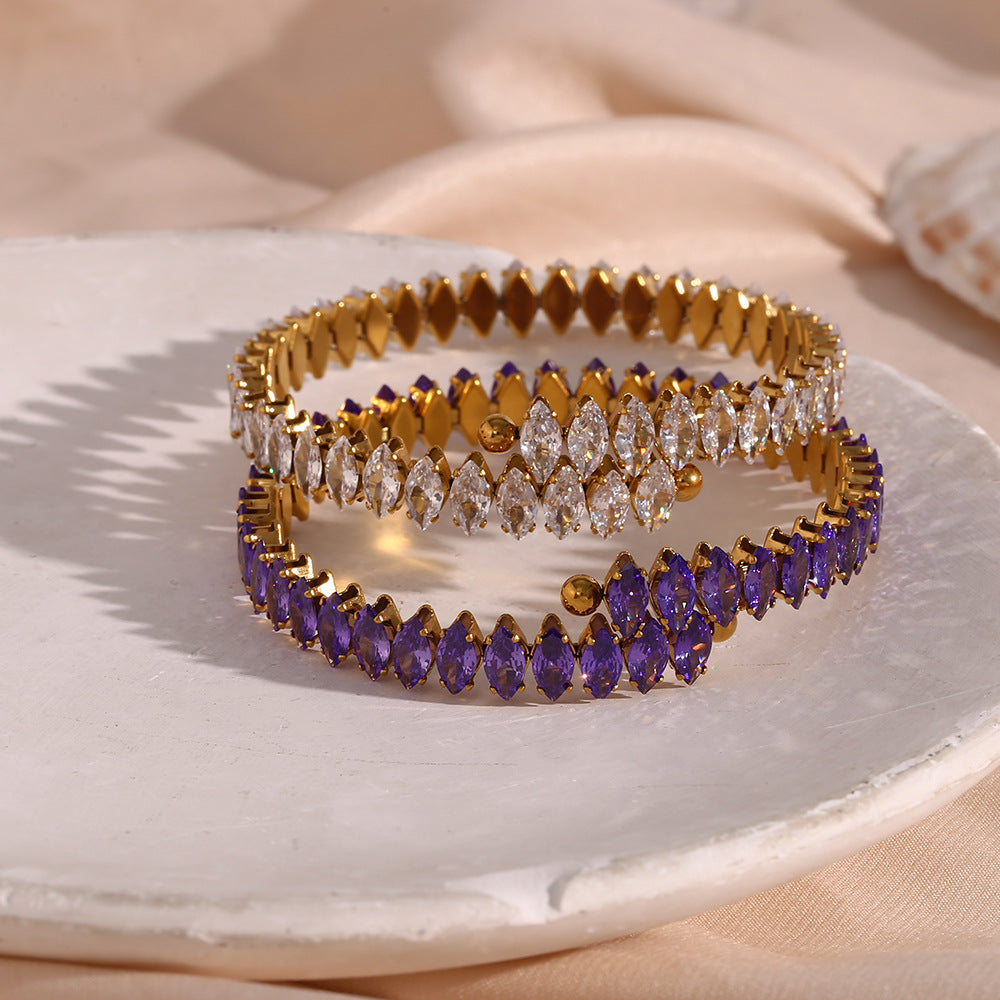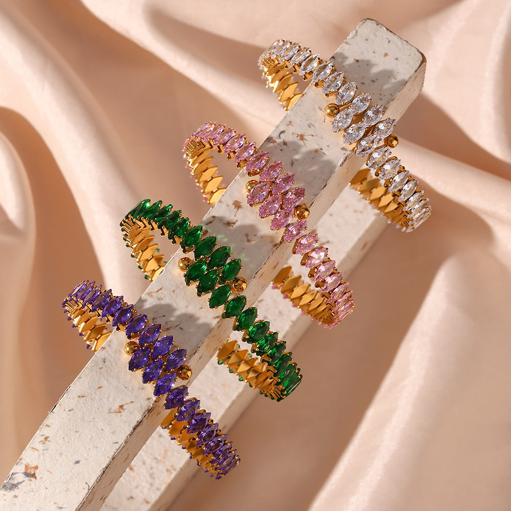 A vivid symphony of color and light — each stone shaped in elegant marquise cut, catching reflections with every movement. Whether in soft pink, emerald green, ocean violet, or crystal white, it’s a piece that transforms the ordinary into something magnetic.