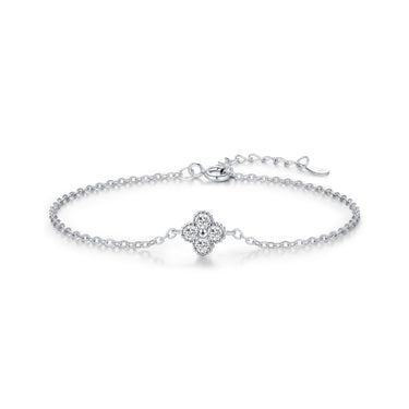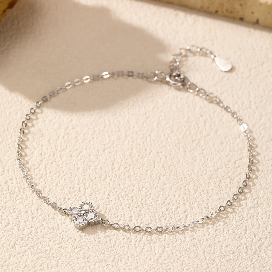 A delicate clover rests at the center, catching the light with a soft, graceful spark. Its gentle symmetry brings a quiet elegance that feels natural on the wrist.