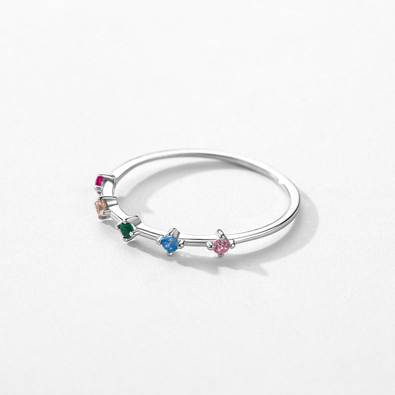 A slender line of color catches the light and moves softly with every gesture. Each zircon stone is set with a quiet precision, balancing delicate scale with a touch of playful brightness. At just 0.7 cm wide and 0.63 g, it layers effortlessly and brings a subtle spark to your everyday rhythm.