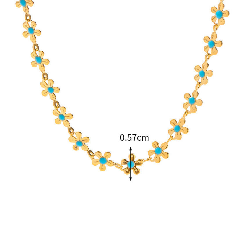 A cheerful floral design accented with turquoise enamel centers, creating a bright and refined summer aesthetic. Crafted with precision from stainless steel for durability and hypoallergenic comfort.