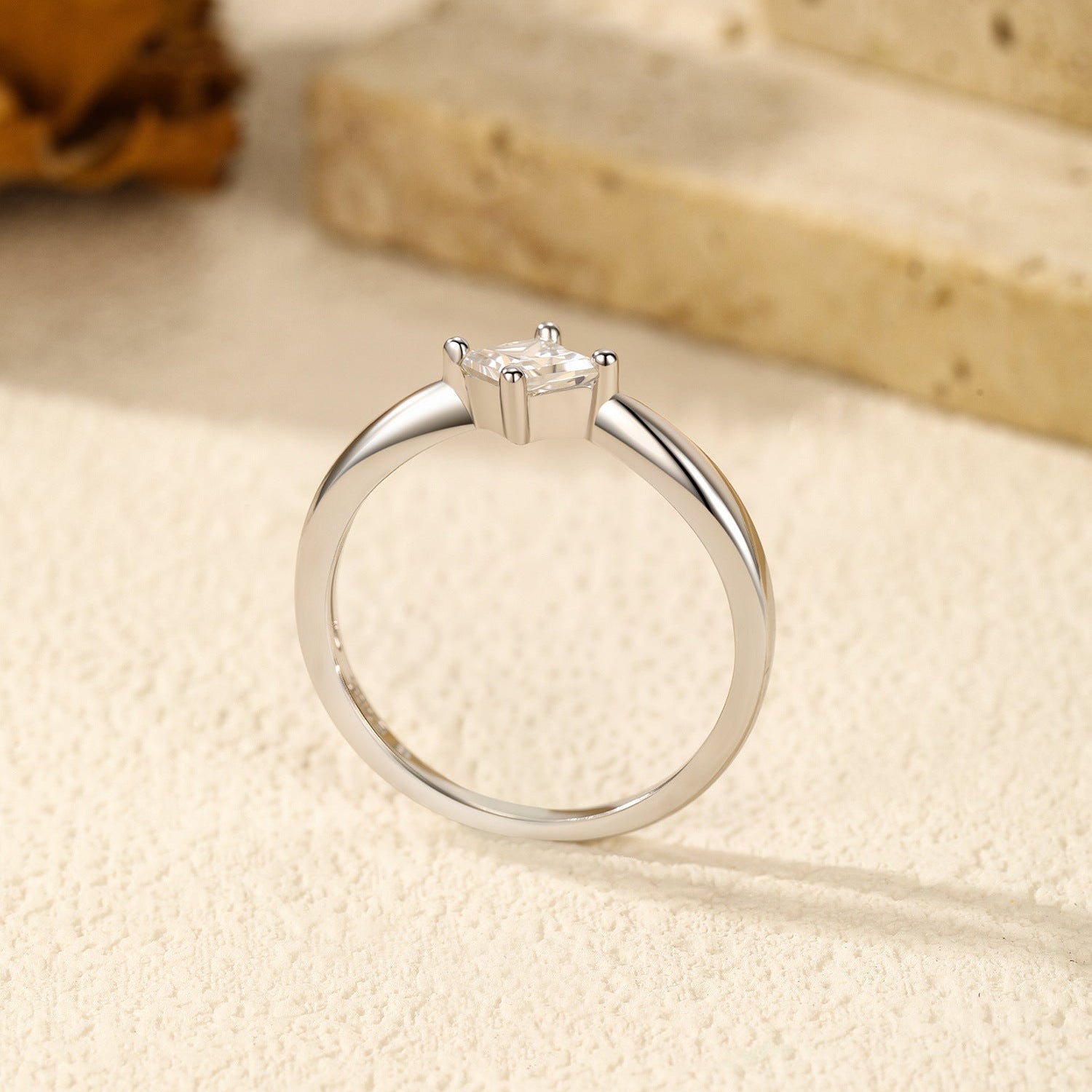 A light captured in its purest form, this ring reflects strength and serenity in a single moment. At its heart rests a 0.35ct moissanite in a refined princess cut, its fire and clarity secured by precise craftsmanship. Accompanied by official GRA certification, it becomes not only a jewel but also a lasting testament to authenticity.