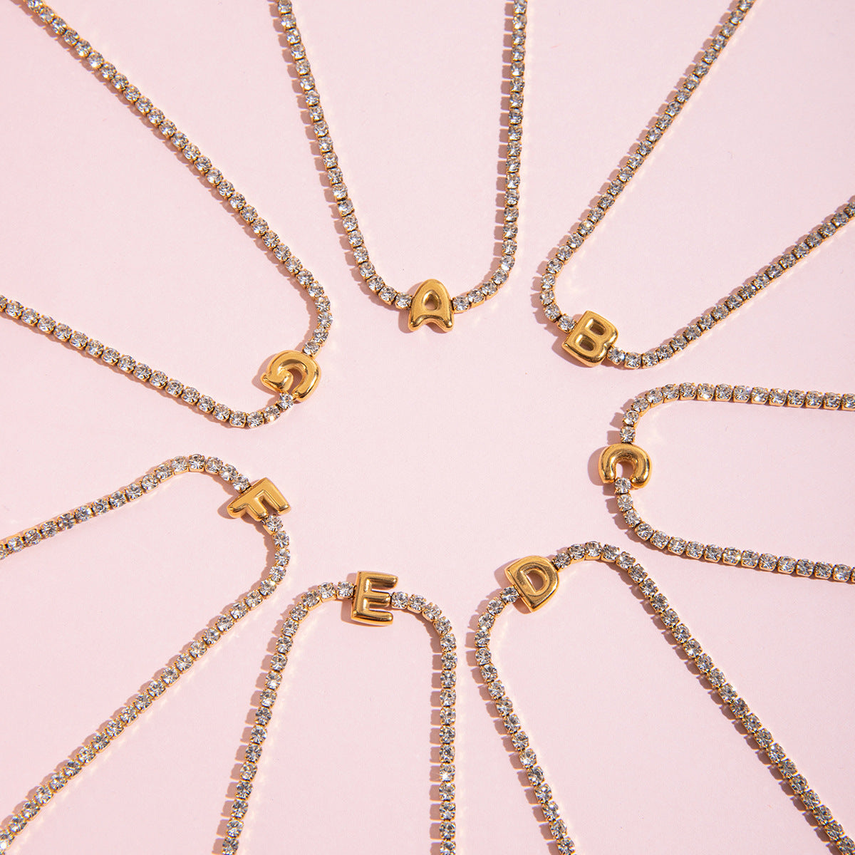 Personal and radiant, each piece in this alphabet series carries your chosen initial suspended from a line of brilliant stones. Designed to fit both anklets and bracelets, every letter becomes a refined statement of identity and shine.