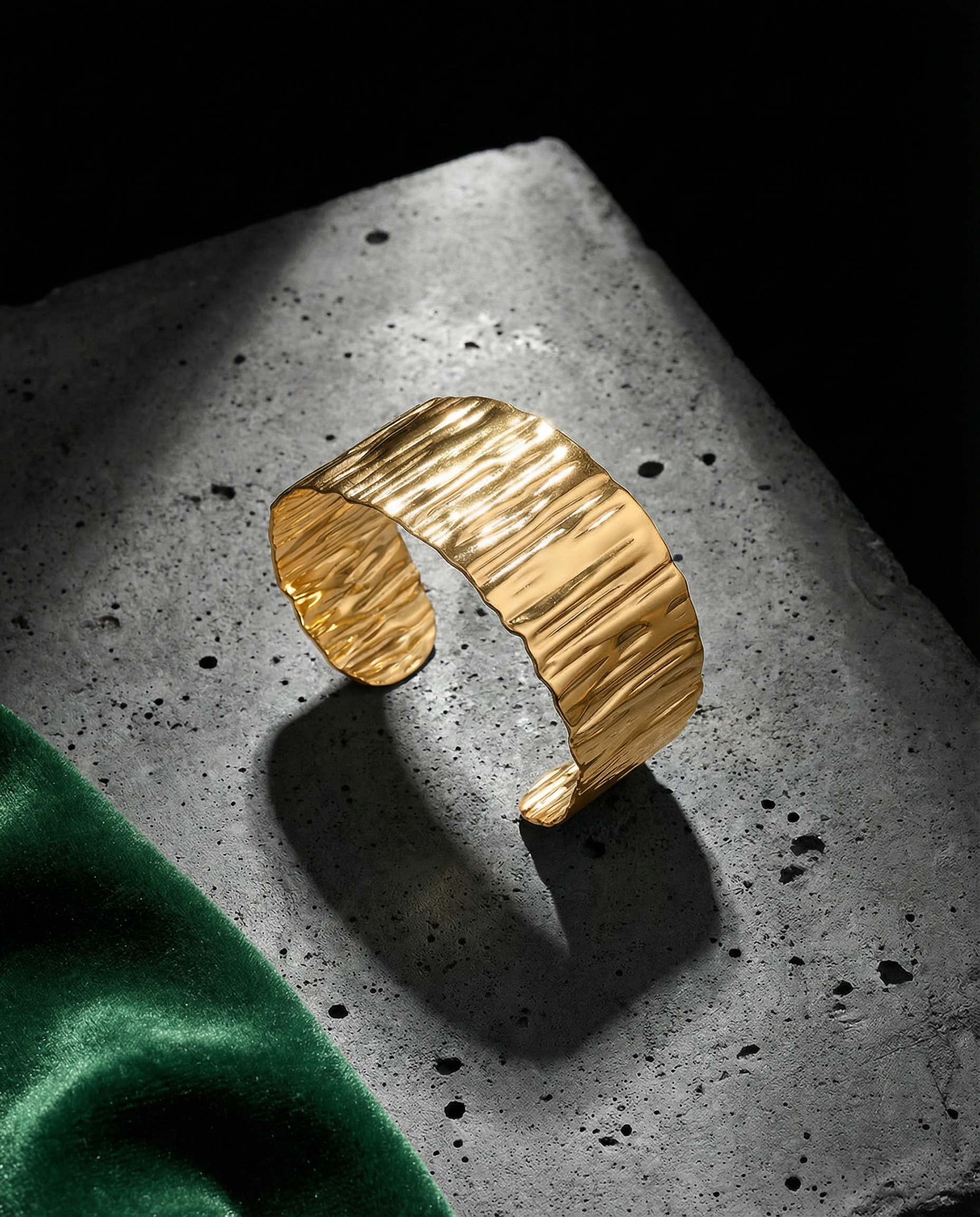 CORRUGATED GOLD WIDE CUFF BRACELET