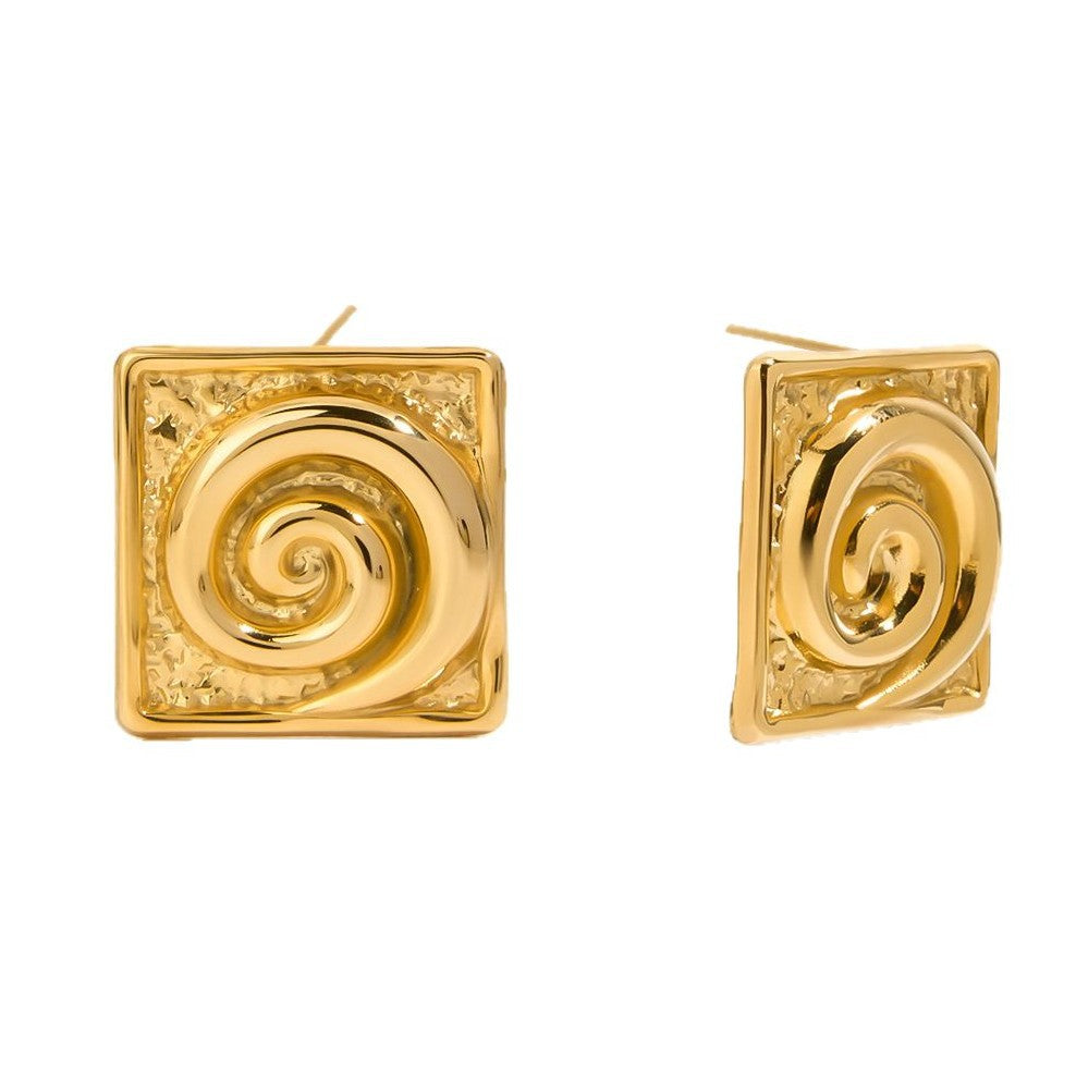 Bold geometry meets fluid motion — a golden spiral captured inside a sculpted square, reflecting balance between art and strength. Each curve catches the light, revealing movement within stillness and timeless allure.