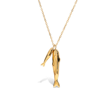 Two sculpted fish move in quiet harmony, suspended like a secret beneath the waves. The pendant flows with a peaceful rhythm, reflecting the deep calm of the sea and the quiet strength found in nature’s balance. Light and gentle, this piece carries a simple beauty that stays close to your heart.