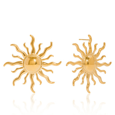 You carry the quiet warmth of light itself with these round sun-inspired studs, glowing softly against your skin. Their polished surface catches brightness in every angle, giving you a calm and refined presence. Made with care, they remain gentle and safe, hypoallergenic and suitable for sensitive skin.